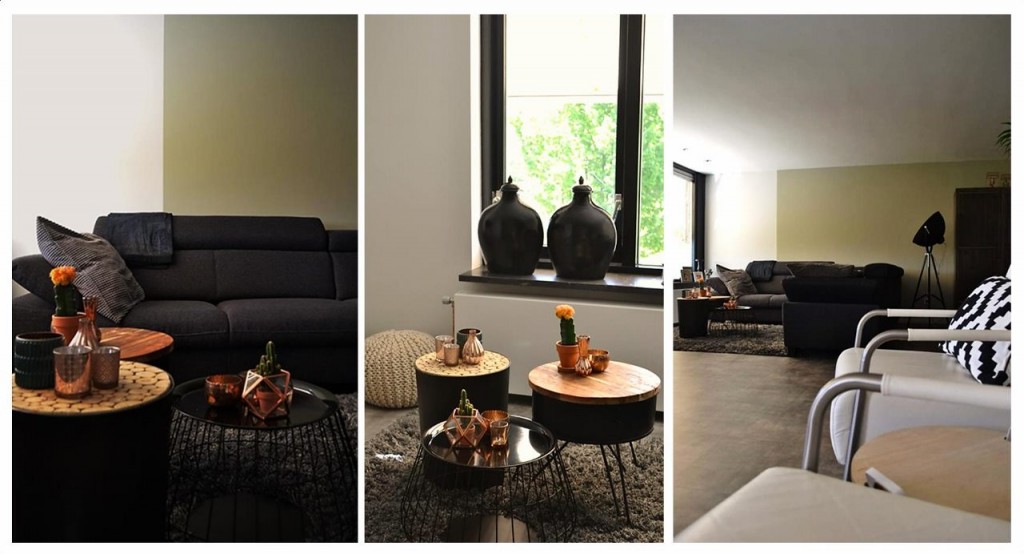 Op de lange wand in de woonkamer en de achterwand