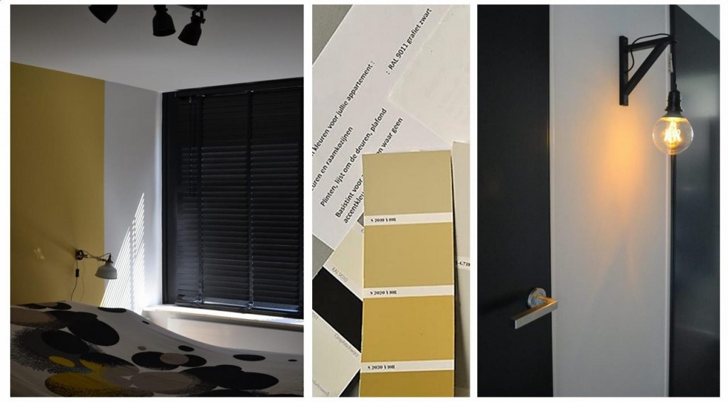 in de slaapkamer zijn de accentkleuren niet op de hele